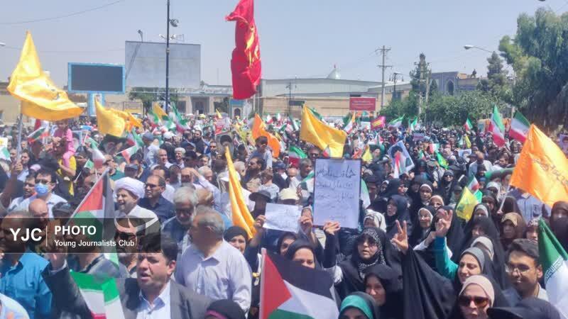 راهپیمایی «جمعه خشم و نصر» در واکنش به جنایات رژیم صهیونیستی، امروز پس از اقامه نماز عبادی سیاسی جمعه در سراسر استان فارس برگزار شد.