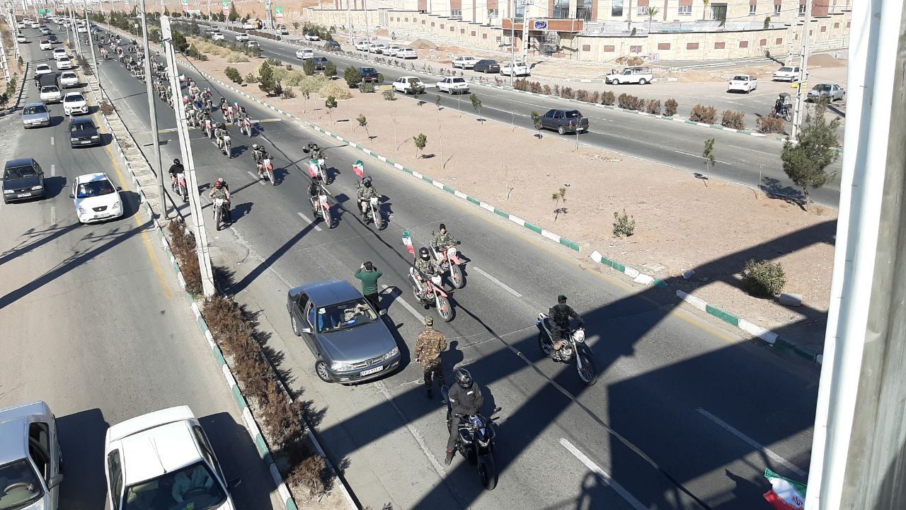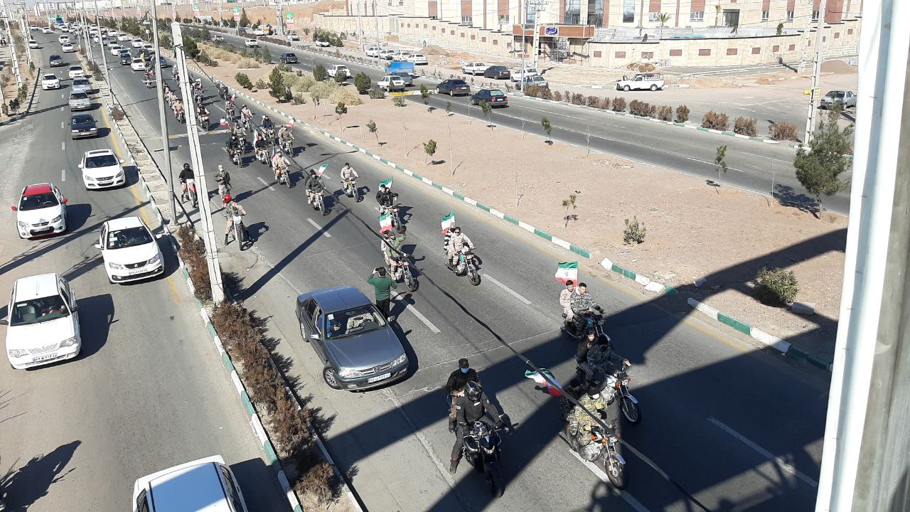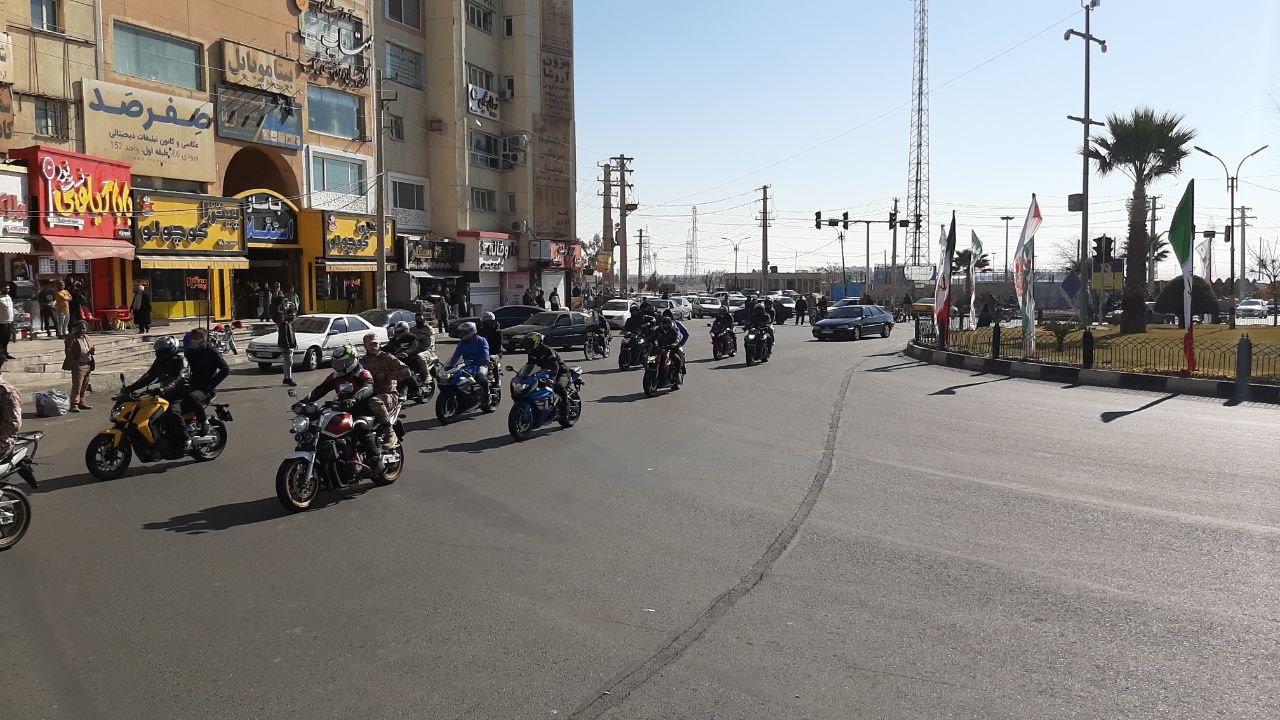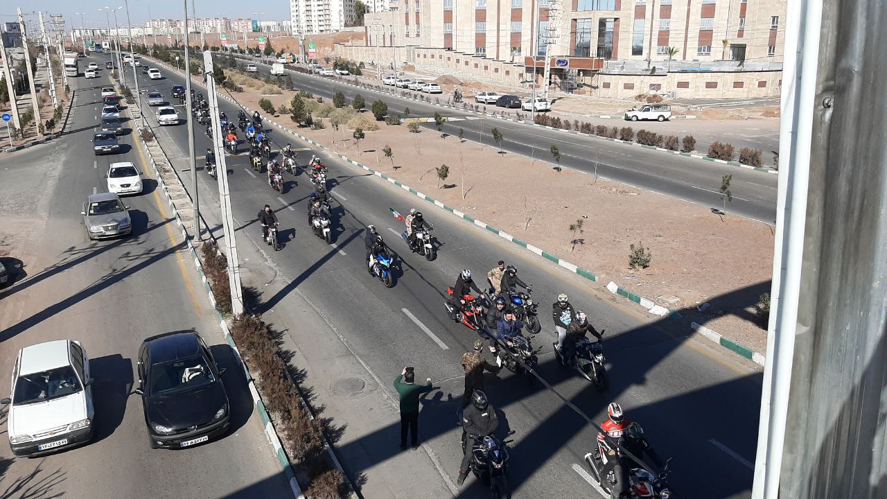 موتور سواران و خودروهای شرکت کننده در این رژه با همراه داشتن پرچم ایران بر ادامه راه شهدا تاکید کردند.