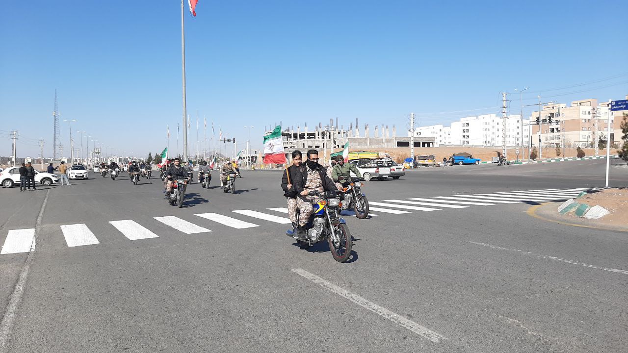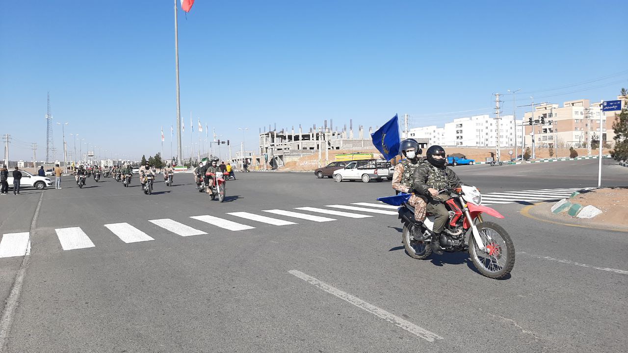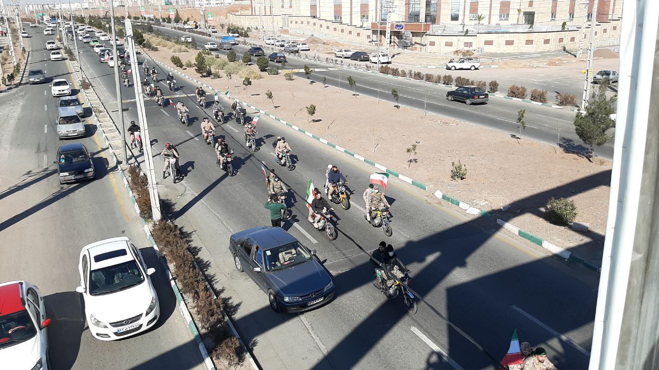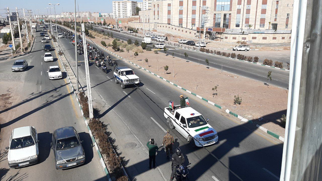 موتور سواران و خودروهای شرکت کننده در این رژه با همراه داشتن پرچم ایران بر ادامه راه شهدا تاکید کردند.