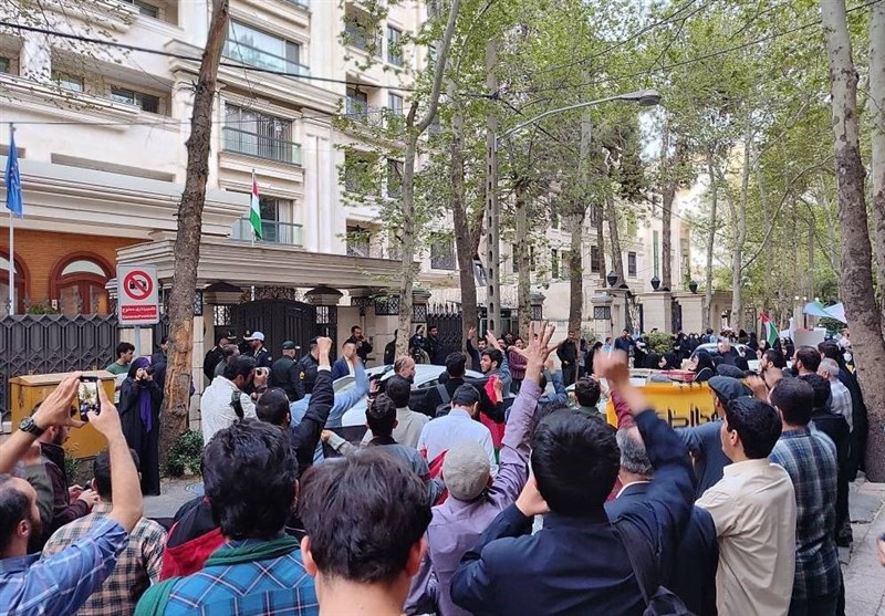 تجمع دانشجویان و مردم تهران مقابل سفارت مجارستان