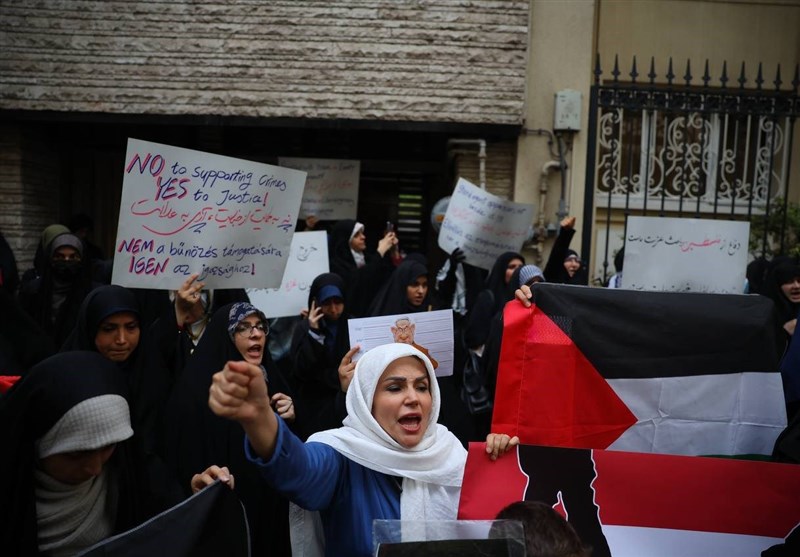 جمعی از دانشجویان و مردم تهران با حضور مقابل سفارت مجارستان ضمن انزجار از کشتار مردم غزه توسط رژیم صهیونیستی حمایت کشور مجارستان از رژیم صهیونیستی را محکوم کردند.