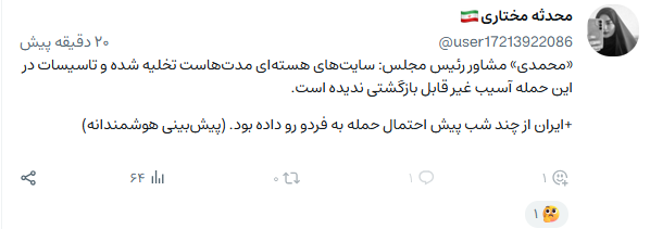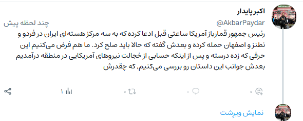 به گزارش نبأپرس، عده زیادی از کاربران با استناد به اخبار معتبر وبسایتهای داخلی و بینالمللی معتقد بودند که آسیب جدی به این تاسیسات وارد نشده و این اتفاق بیشتر یک بلوف رسانهای از جانب رئیسجمهور آمریکا قلمداد میشود.