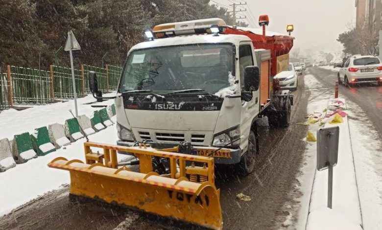 خودروهای مکانیزه برف روب در معابر اصلی پایتخت مستقر شدند