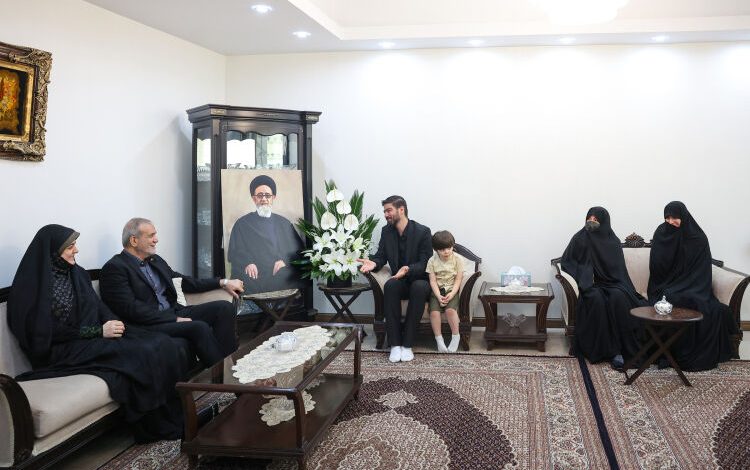 دیدار دکتر پزشکیان با خانواده امام جمعه فقید تبریز و سرتیم حفاظت شهید رئیسی