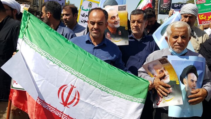 ” مرگ بر منافق” “مرگ بر آمریکا” و “مرگ بر اغتشاش گر و آشوبگر” ، “نیروی انتظامی تشکر تشکر” از مهمترین شعارهای راهپیمایان در شهرهای هرمزگان بود.