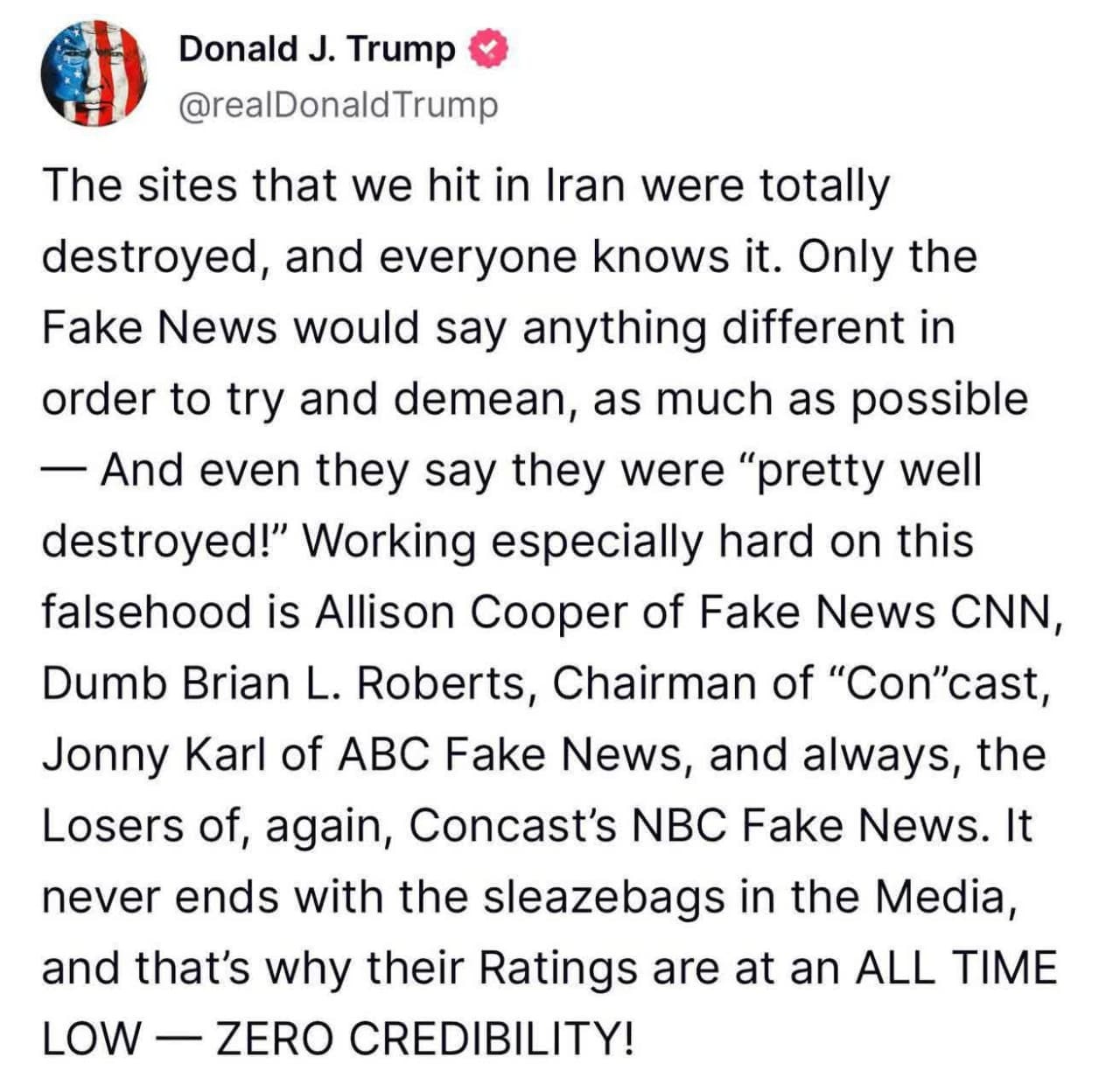 به گزارش نبأپرس، ترامپ در اولین واکنش پس از حمله ایران به پایگاه آمریکا در قطر فقط گفت ما سه سایت هسته‌ای ایران را نابود کردیم و رسانه‌های دموکرات دروغ می‌گویند که این اتفاق نیفتاده است.