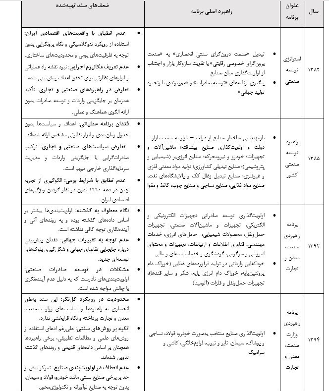آن چنان که ذیل بند چهارم ماده 10 سیاست‌های کلی اقتصاد مقاومتی تحت عنوان «برنامه‌ریزی تولید ملی متناسب با نیازهای صادراتی، شکل‌دهی بازارهای جدید، و تنوع بخشی پیوندهای اقتصادی با کشورها به ویژه با کشورهای منطقه» مطرح می‌شود، در حال حاضر صرف نظر از درگیری اقتصاد ایران با مسئله تحریم‌ها در یک دهه اخیر، پرسش از نقش دولت در توسعه صنعتی و ترسیم نقشه راه آن، مسئله‌های حیاتی برای این اقتصاد محسوب می‌شود.