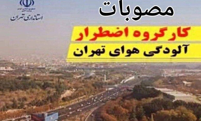 مصوبات کارگروه اضطرار آلودگی هوای استان تهران اعلام شد
